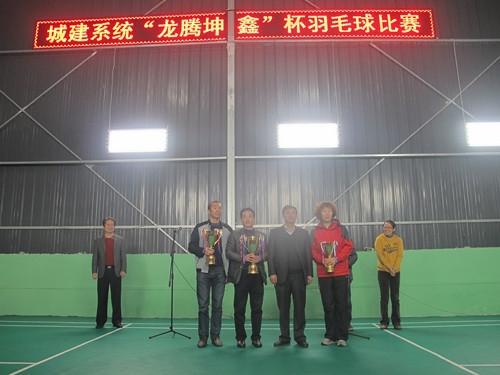 11月15日,區(qū)城鄉(xiāng)建設系統(tǒng)“龍騰坤鑫杯”羽毛球比賽圓滿落幕,我公司代表隊力壓群雄,取得了團體第一名的好成績。此次比賽共有17支代表隊、68名男女隊員參加,我公司龔志燕、李曉俊、黃駿、王俊4名隊員參加了比賽,經(jīng)過一天的激烈角逐,公司獲團體冠軍,龔志燕獲女子組單打冠軍,充分展現(xiàn)了公司員工團結、拼搏、進取的精神風貌。