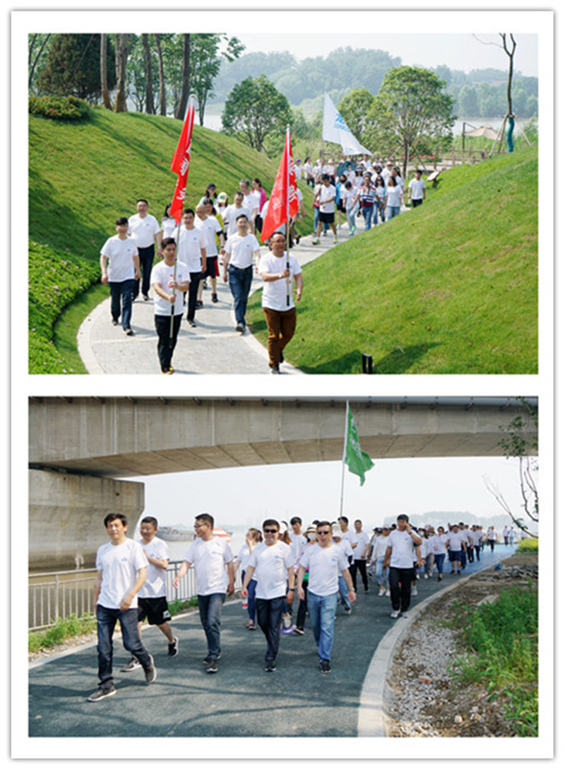 活動開始,首先,總經(jīng)理王智勇代表公司致詞,做了熱情洋溢的動員,接著,參加活動的各位領(lǐng)導(dǎo)為公司本部及四個子公司共五支代表隊進行了集中授旗,最后,隨著公司執(zhí)行董事張勇的隆重宣布和發(fā)令槍聲的響起,健步走活動正式開始。大家從風(fēng)景如畫的三河六岸公園音樂噴泉廣場出發(fā),沿著步道,一直走到今年新建成的南水北調(diào)源頭公園氣膜館。大家一個個精神飽滿,熱情高漲,意氣風(fēng)發(fā),邊走邊交流,細(xì)數(shù)著公司過去及現(xiàn)在發(fā)展歷程中的點點滴滴,同時,欣賞著公園美景,感受著健步走帶來的歡樂,大家一路走,一路笑,各種喜悅寫滿了笑臉。