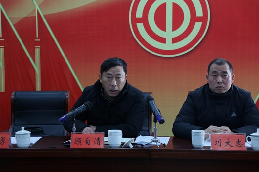 公司執(zhí)行董事、黨總支書記張勇同志宣讀區(qū)總工會(huì)批文