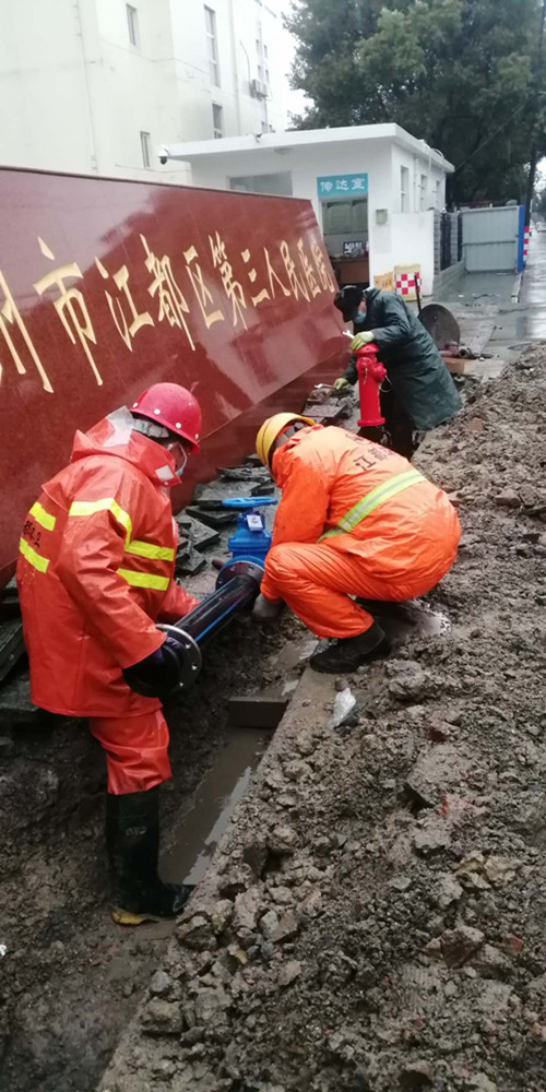 新冠肺炎疫情在全國范圍內爆發(fā)以來,我區(qū)擴建第三人民醫(yī)院作為江都區(qū)的“火神山”醫(yī)院,隨著病房的增多,用水需求也相應增大,公司下屬揚州龍泉建設工程有限公司按照上級相關要求,配合醫(yī)院的建設進度,對原有的自來水供水管道進行擴建改造,切實保障醫(yī)療用水需求。