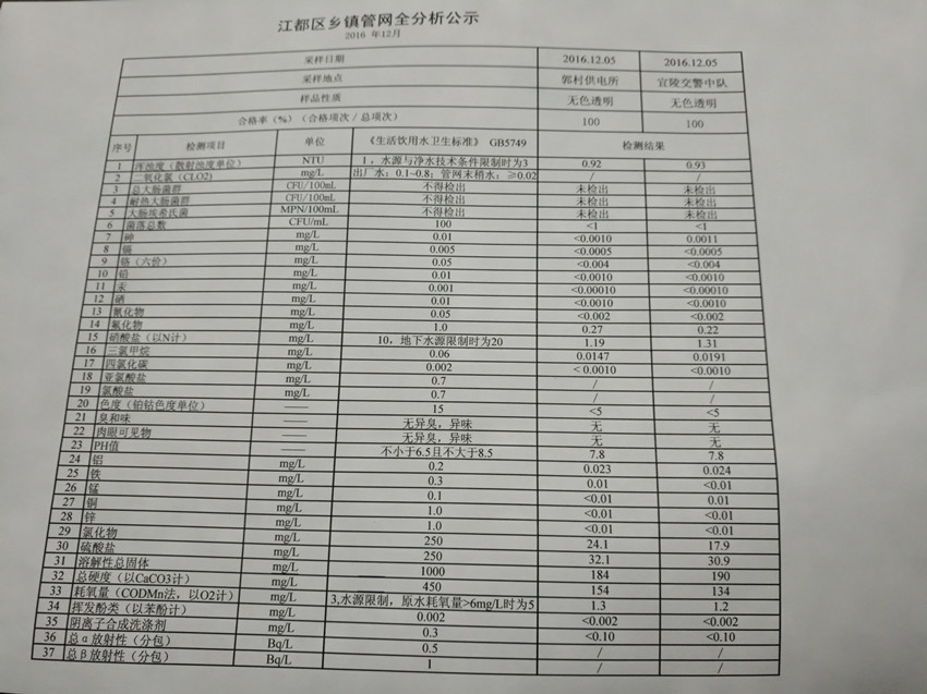 水質(zhì)公示
