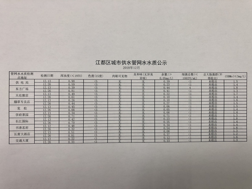 水質(zhì)公示