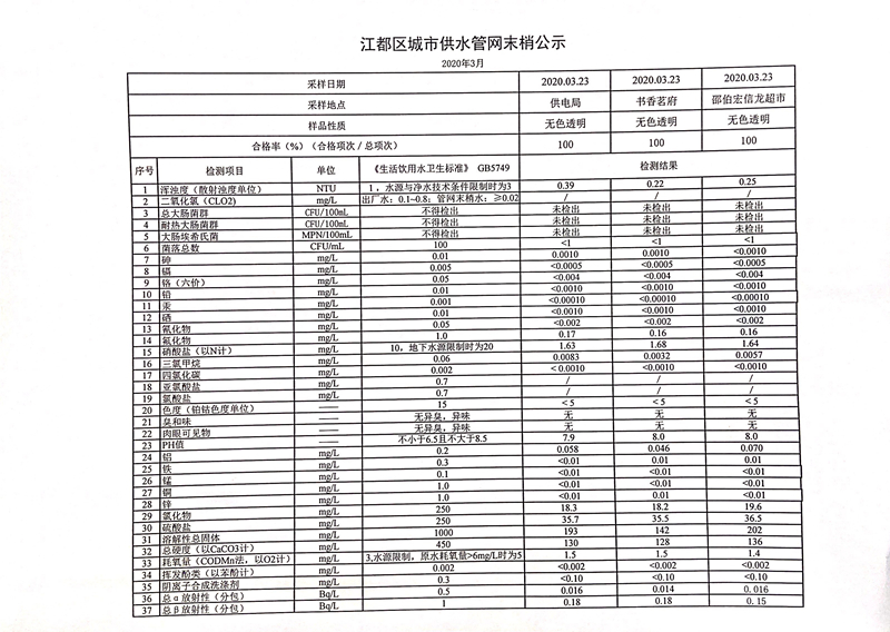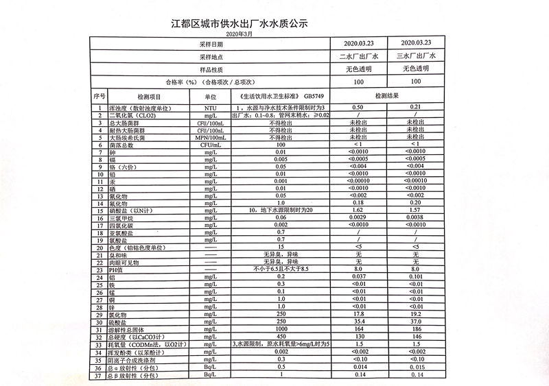 水質(zhì)公示