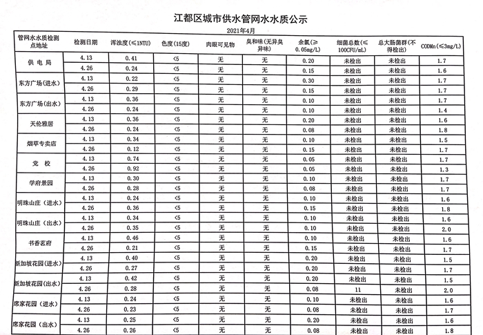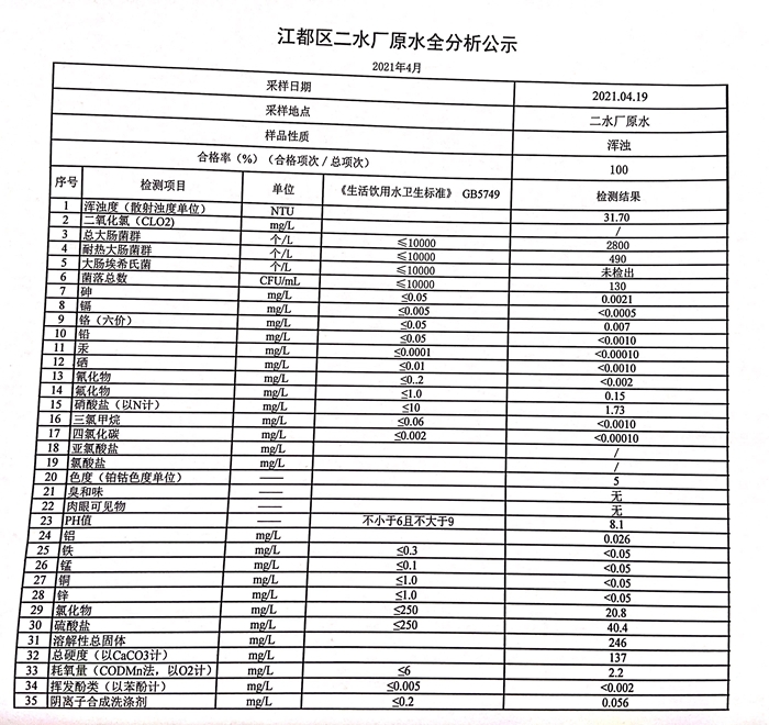 水質(zhì)公示