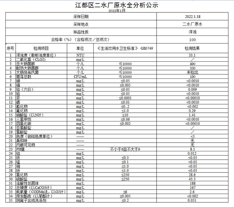 水質(zhì)公示