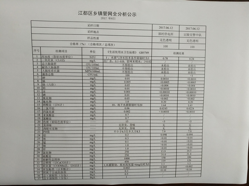 2017年6月江都區(qū)鄉(xiāng)鎮(zhèn)管網(wǎng)全分析公示