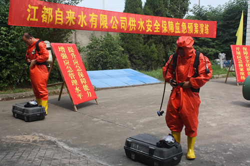 為進一步提高安全防范水平,保障夏季高峰供水,6月24日,區(qū)自來水公司根據(jù)安全生產(chǎn)月活動安排,在第二水廠舉行了液氯泄漏及突發(fā)性水源微污染事件應急預案演練,公司制水生產(chǎn)、機電維修、水質(zhì)檢測等工種人員參加了演練,區(qū)域供水增壓泵站工作人員進行了全過程學習。區(qū)城建局相關部門負責人進行了現(xiàn)場指導,區(qū)污水處理廠和亨達水務等兄弟單位組織人員現(xiàn)場觀摩。