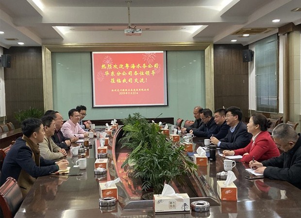 11月22日,粵海水務(wù)公司華東分公司董事長李蘇杰一行六人來我公司進(jìn)行調(diào)研交流。公司執(zhí)行董事張勇、總經(jīng)理王智勇、副總經(jīng)理兼惠民公司執(zhí)行董事王永慶、總工程師廖群等分別介紹了龍川水務(wù)產(chǎn)差控制相關(guān)工作情況,雙方就產(chǎn)差控制的技術(shù)與措施進(jìn)行了探討和深入交流。