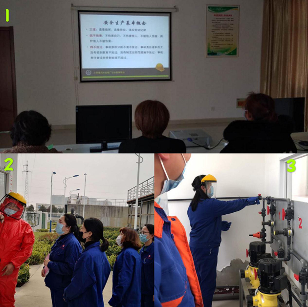以邵伯污水廠為例,該廠結(jié)合自身工作實際,組織污水運營工學(xué)習(xí)次氯酸鈉的特性、消殺毒原理及如何正確使用防護(hù)裝備,熟練掌握次氯酸鈉發(fā)生泄漏時的各項應(yīng)急處理措施,并在現(xiàn)場實施了一系列演練活動。另組織運營工赴小紀(jì)污水處理廠內(nèi)觀看學(xué)習(xí)安全教育視頻,提高了員工安全防范意識及風(fēng)險識別能力。