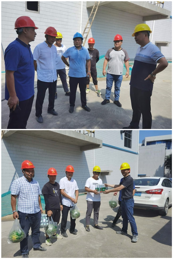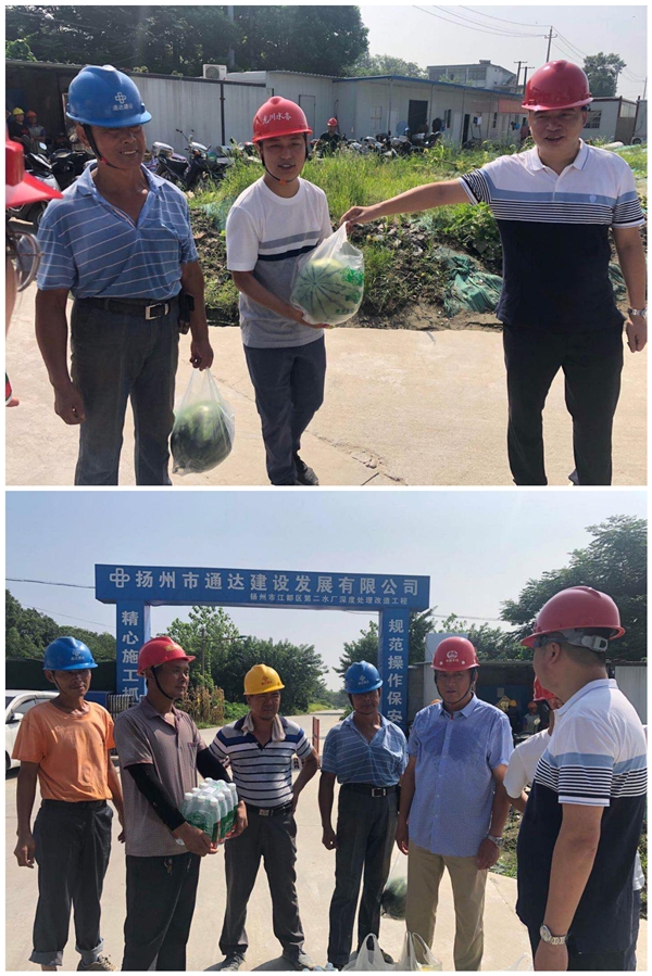 近日來,揚城開啟了“燒烤”模式,為做好高溫季節(jié)防暑降溫工作,切實保障廣大施工人員的安全健康,有效促進(jìn)重點工程建設(shè),8.18日上午,在龍川控股集團(tuán)副總兼公司執(zhí)行董事張勇帶領(lǐng)下,集團(tuán)與公司黨政工領(lǐng)導(dǎo)代表頂著酷暑,帶著慰問品來到二、三水廠深度處理改造工程項目施工現(xiàn)場,對在高溫下作業(yè)的建設(shè)者進(jìn)行親切慰問。