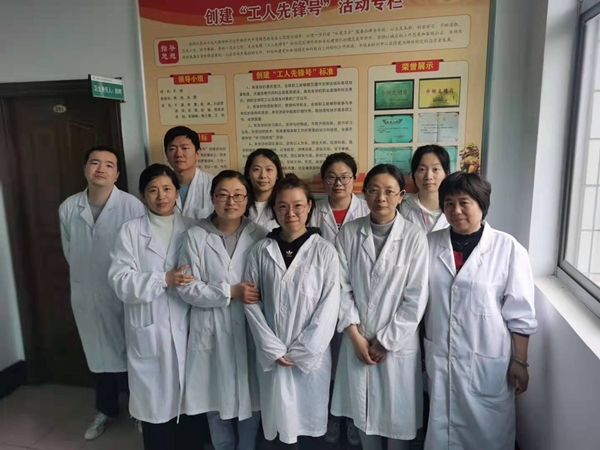 圖為環(huán)境檢測(cè)公司中心化驗(yàn)室全體成員在創(chuàng)爭(zhēng)專欄前合影