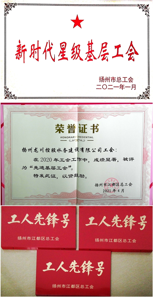 在一年一度的“五一國(guó)際勞動(dòng)節(jié)”即將來(lái)臨之際,江都區(qū)總工會(huì)第十五屆三次全委(擴(kuò)大)會(huì)議在城區(qū)召開(kāi),大會(huì)在總結(jié)上年度以來(lái)工會(huì)各項(xiàng)工作的同時(shí),并對(duì)涌現(xiàn)出的各類先進(jìn)集體和先進(jìn)個(gè)人進(jìn)行了隆重表彰。揚(yáng)州龍川水務(wù)公司工會(huì)榮獲揚(yáng)州市級(jí)“新時(shí)代星級(jí)基層工會(huì)”和江都區(qū)級(jí)“先進(jìn)基層工會(huì)”稱號(hào);龍川水務(wù)公司下屬環(huán)境檢測(cè)公司中心化驗(yàn)室、下屬惠民區(qū)域供水公司營(yíng)銷管理辦公室和龍川水務(wù)公司客戶服務(wù)部客服大廳三個(gè)班組榮獲“工人先鋒號(hào)”先進(jìn)集體稱號(hào)。
