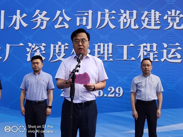 副區(qū)長(zhǎng)楊曉榮同志代表區(qū)委、區(qū)政府作重要講話,首先對(duì)龍川水務(wù)公司第二、三水廠深度處理工程的竣工投運(yùn)表示熱烈的祝賀,并強(qiáng)調(diào)指出,水是經(jīng)濟(jì)社會(huì)發(fā)展的重要基礎(chǔ)和關(guān)鍵命脈,龍川控股集團(tuán)委托深圳環(huán)水投資集團(tuán)運(yùn)營(yíng)龍川水務(wù)后,水務(wù)公司能緊緊圍繞民生所需、民眾所期、民心所盼,大力實(shí)施放心水、優(yōu)質(zhì)水工程,積極推進(jìn)供水支管網(wǎng)改造和污水管網(wǎng)、農(nóng)村污水處理設(shè)施建設(shè),為全區(qū)水生態(tài)文明建設(shè)作出了突出的貢獻(xiàn),龍川水務(wù)公司整體的質(zhì)態(tài)也有了較大的飛躍。希望以今天的通水儀式為新的起點(diǎn),不忘初心,牢記使命,乘風(fēng)破浪,穩(wěn)健前行,進(jìn)一步推進(jìn)供水事業(yè)發(fā)展,為江都的社會(huì)穩(wěn)定、經(jīng)濟(jì)發(fā)展做出更大的貢獻(xiàn)。