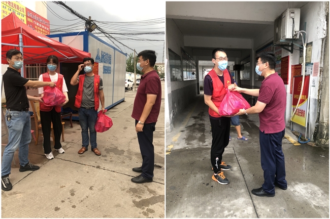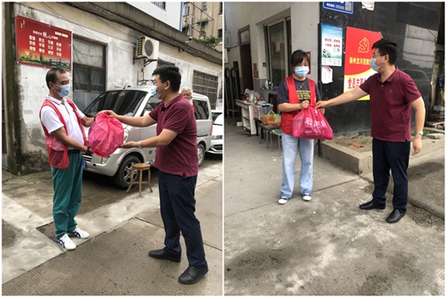 本次水務(wù)公司對口支援防疫志愿服務(wù)社區(qū)的是仙女鎮(zhèn)樊莊社區(qū),王智勇帶領(lǐng)公司黨政工領(lǐng)導(dǎo)代表先后來到該社區(qū)無物管小區(qū)的公交公司宿舍、女神公寓、綜合樓、龍都花園、東方苑、建材廠和虹都苑等防疫執(zhí)勤點(diǎn),為堅守防疫一線的工作人員送上泡面、牛奶、蘇打水和口罩等生活、防疫物資,并向他們致以誠摯的問候,感謝他們在疫情防控緊要關(guān)頭,迎難而上、積極應(yīng)對,始終做好“守門員”盯緊“防疫線”,用實(shí)際行動踐行初心使命,用堅毅的品格將“我為群眾辦實(shí)事”貫徹到底,并落在當(dāng)前最為關(guān)鍵的抗疫實(shí)處。每到一處,王智勇都會詳細(xì)了解執(zhí)勤點(diǎn)的干部職工的個人防護(hù)、崗點(diǎn)值守、后勤保障等情況,鼓勵大家繼續(xù)發(fā)揚(yáng)好連續(xù)作戰(zhàn)的精神,細(xì)致工作,科學(xué)防控,在履職盡責(zé)的同時做好自身防護(hù),確保用更為良好的精神狀態(tài)繼續(xù)幫助樊莊社區(qū)做好常態(tài)化疫情防控工作,與全區(qū)人民一道堅決打贏打好這場疫情防控戰(zhàn)。