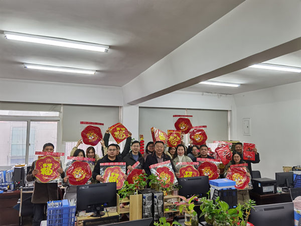 同時,當(dāng)天下午,由龍川水務(wù)公司總經(jīng)理王智勇同志、公司工會領(lǐng)域的負(fù)責(zé)同志以及相關(guān)工作人員組成的新春走基層特別慰問小組,向各部門、子公司相關(guān)行政辦公室贈送了精心準(zhǔn)備的“福”字和虎年相關(guān)的掛件禮物,并向他們致以新年的祝福和問候。通過這一活動,既能增強(qiáng)員工凝聚力和歸屬感,也為我們廣大的水務(wù)員工較好地展現(xiàn)了中國傳統(tǒng)節(jié)日的風(fēng)俗習(xí)慣和文化內(nèi)涵。