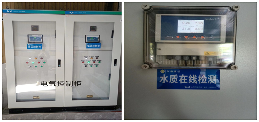 二次供水智慧化標(biāo)準(zhǔn)泵房是高層住宅居民小區(qū)中的重要配套設(shè)施,我公司高度重視,并首先在梧桐公園小區(qū)進(jìn)行試點(diǎn)并已建成使用,在此建設(shè)和推廣過程中,均要求做到:每個(gè)泵房的控制柜分別控制與其相對(duì)應(yīng)的設(shè)備;配有渾濁度、余氯和PH值在線檢測設(shè)備;24小時(shí)檢測出水渾濁度、余氯和PH值三個(gè)指標(biāo)確保每戶市民用水安全;此外,每個(gè)控制柜配有觸控屏幕,詳細(xì)記錄實(shí)時(shí)進(jìn)水壓力、出水壓力、變頻數(shù)值、機(jī)泵運(yùn)行等參數(shù)指標(biāo)。