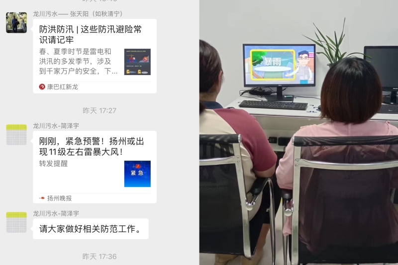 各廠在確保安全生產(chǎn)的同時,加強水質(zhì)監(jiān)測,統(tǒng)籌兼顧,密切關(guān)注天氣變化、雨水情況及泵房液位,重點做好以下幾方面防汛防洪工作:一是做好防汛防洪相關(guān)物資儲備工作;二是對廠內(nèi)防洪隱患點進行排查,對雨水溝進行清理,并檢查廠外提升泵站,對關(guān)鍵部位進行防堵清淤;三是宣傳落實防汛防洪工作要求,牢固樹立全員防災(zāi)避災(zāi)風(fēng)險意識,通過觀看防汛防洪相關(guān)紀錄片,切實提高員工防汛防洪應(yīng)急處置能力。